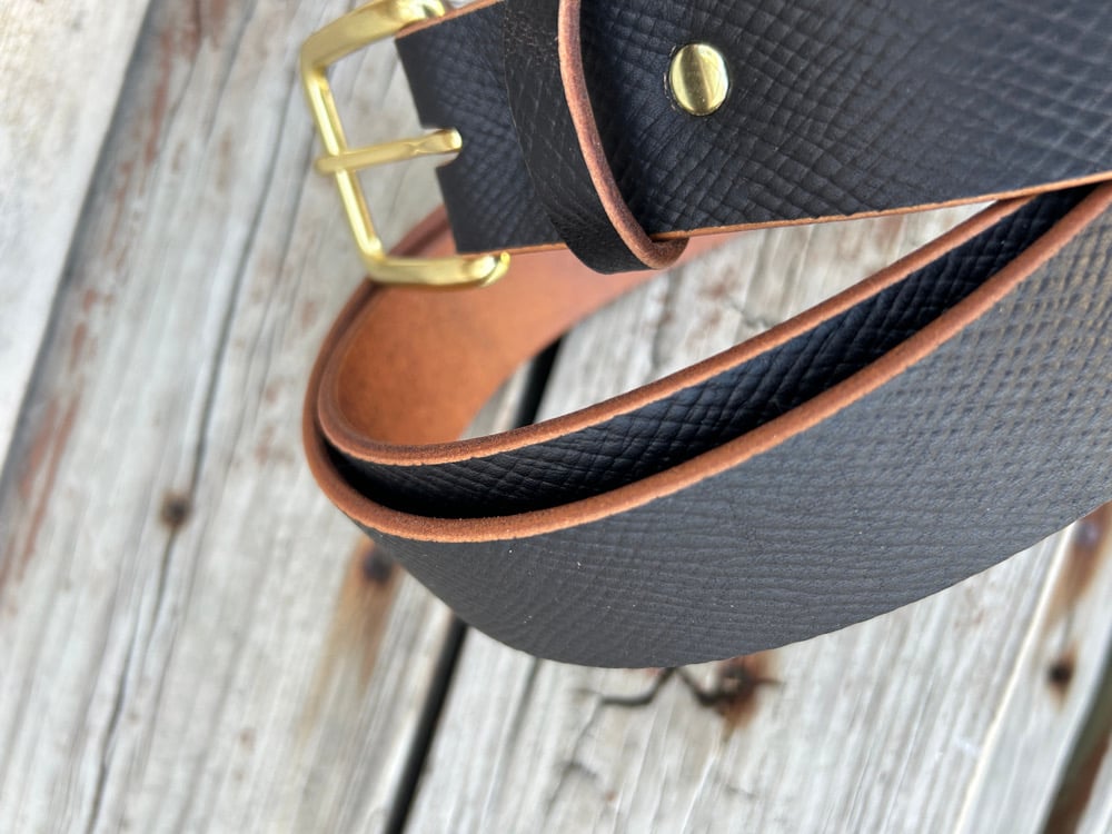 Horween Leather Belt - Matte Black Winchester Hatch Grain Veg Tan - 1.5"