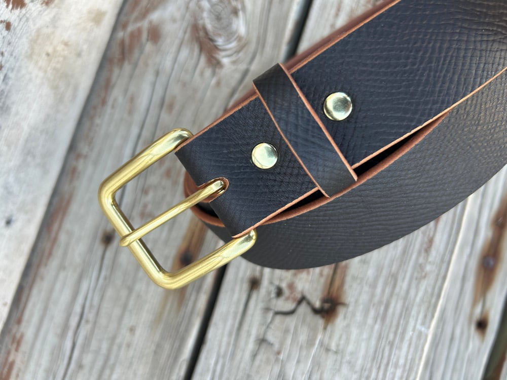 Customizations can be made to this belt. See the 'Belt Customizations' section to see available options for buckles, brass keepers, and Chicago screws.